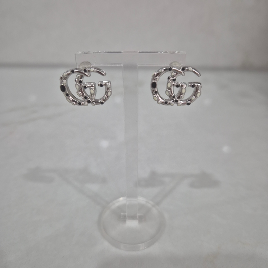 Gucci Silver Earrings With Black & White Design
